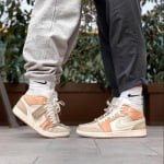 Dropping as part of a three-piece City Pack, the Air Jordan 1 Mid ‘Milan’ draws inspiration from Italy??s fashion capital, featuring colors and textures that call to mind the city??s gothic architecture. The upper combines an Off-White leather quarter panel with textured leather overlays in varying shades of beige, along with a tan suede toe box and a grey textile collar. A leather MLN hangtag gives the nod to fine Italian craftsmanship.