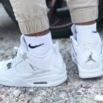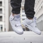 Released in May of 2017, the Air Jordan 4 Retro ‘Pure Money’ 2017 features a white leather upper with a white rubber sole. First introduced back in 2006, this 2017 version of the colorway also features chrome eyelets, a chrome Jumpman on the heel, and ‘Pure$’ on the inside of the back tabs.