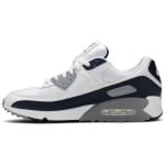 The Nike Air Max 90 ‘Obsidian’ applies a straightforward color scheme to Tinker Hatfield’s vintage runner. The upper combines a breathable white mesh base with tonal leather overlays and a contrasting Obsidian mudguard. The latter hue is repeated on the TPU eyelets and heel panel, complete with Nike Air branding to maintain the OG look. Underneath the heel, a visible Max Air unit is surrounded by signature cassette detailing in a Particle Grey finish.