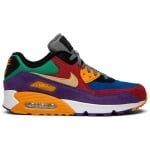 Built with asymmetrical colored panels and the retro running lines of a Nike icon, the Air Max 90 ‘Viotech’ is a can’t-miss makeover inspired by a cult Dunk colorway. Released on August 29th, 2019, the upper is constructed of supple suede for street-ready durability and a premium look and feel. The unique color blocking of University Red, Pale Vanilla, and Hyper Grape mimics the original Viotech Dunk Low from 2002.