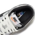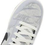 Via this newly revealed Dunk Low, Nike is highlighting one of their most familiar markings, which typically dresses a shoe’s tongue label. Here, it’s proliferated across the entire base — toe box, mid-panel, collar — printed in blue against a soft, heather grey textile. The tumbled leather overlays match said cool tone across the forward-half of the silhouette, while the rear portion opts for a much darker, greyer finish. Additionally, the Swoosh and lining are tinted down to a dark black, and the midsole/laces round out the colorway in white.