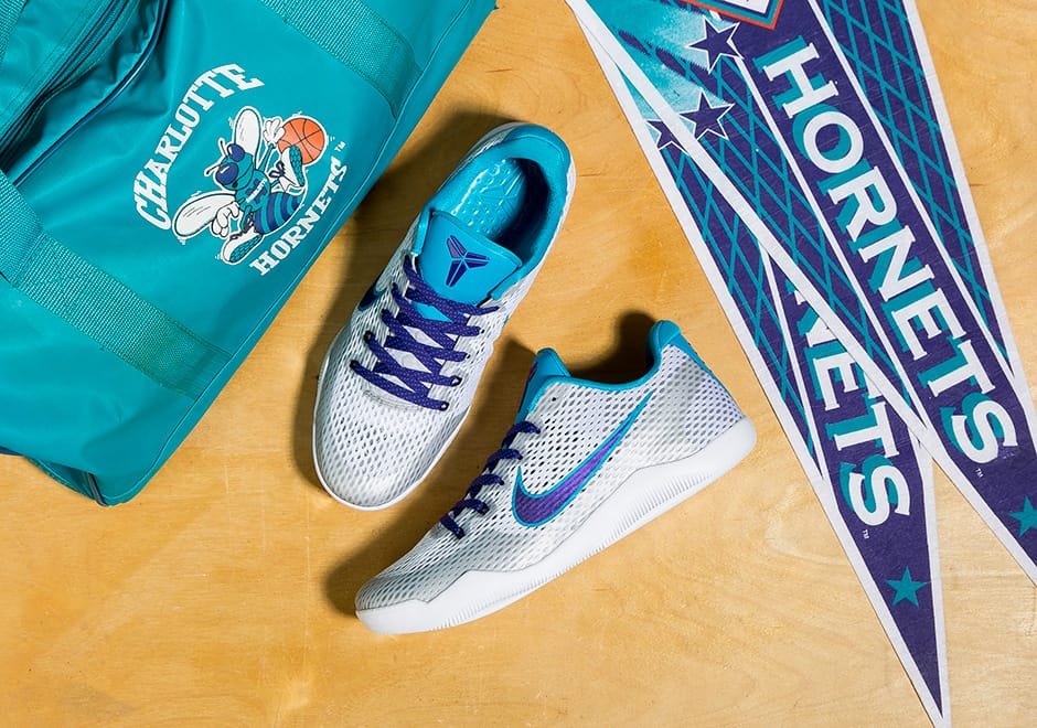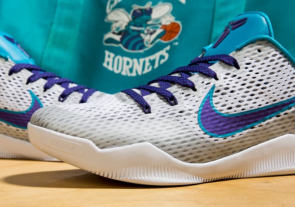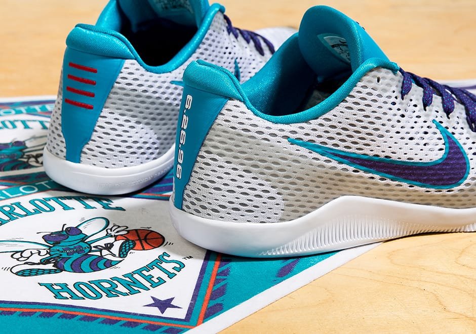As he was originally drafted by the team during the 1996 NBA Draft, the model is draped with the Hornets’ signature palette overall.