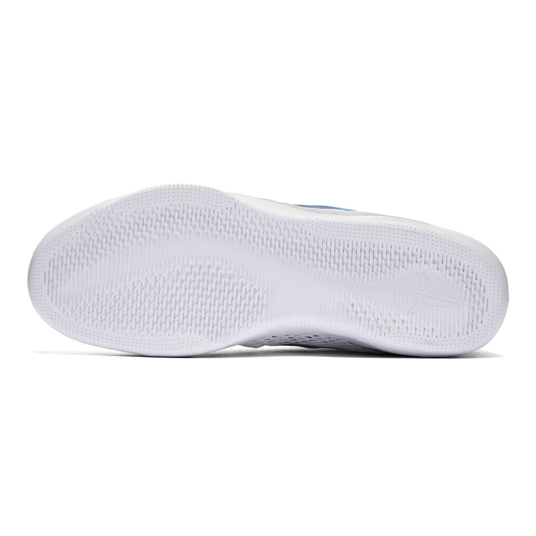 White and grey is implemented across its upper, while the defining theme of purple and blue lagoon accents is prominent on the Swooshes across its side panels, laces, tongue and inner lining.
