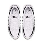 Like the ’03 pair, the 95’s ribs alternate black and white, though this time around the rest is kept crisp and white. Detailing keeps to the black and white palette as well, with monochrome branding on the tongue and black mini Swoosh at the heel. A gum sole keeps everything from being too plain.