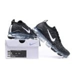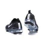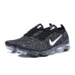 The Nike Air Vapormax Flyknit 3 women’s running shoe has fashion-inspired design and advanced footwear technology. The shoe utilizes the Swoosh brand’s Flyknit material in black and white to create an “Oreo” effect. Sticking with the simple color palette, solid black covers the toe box, collar, laces, and heel plate. The midfoot Swoosh contrasts in white. A clear translucent Vapormax cushioning