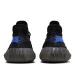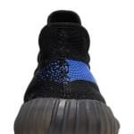 Sleek black covers most of the Primeknit upper as well as the laces and lining. A pop of color comes by way of a royal blue lateral stripe bearing “SPLY-350” branding. The shoe’s charcoal gray midsole features the model’s typical BOOST responsive cushioning.